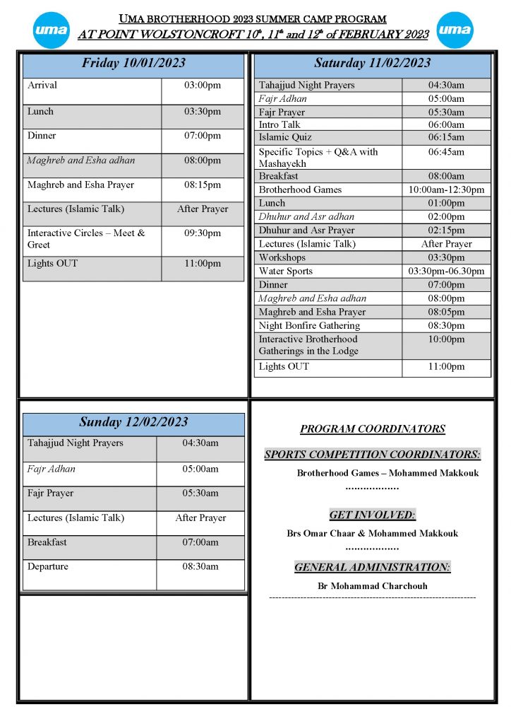 Welcome to the UMA Brotherhood Summer Camp 2023